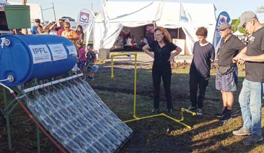 Una de las sorpresas de la reciente Expo Cañuelas fue la presentación de un stand a cargo del Centro de Formación Laboral (CFL) Nro. 401 en el que se exhibieron distintas producciones de los alumnos, entre ellas un termotanque solar construido en gran parte con materiales de descarte.