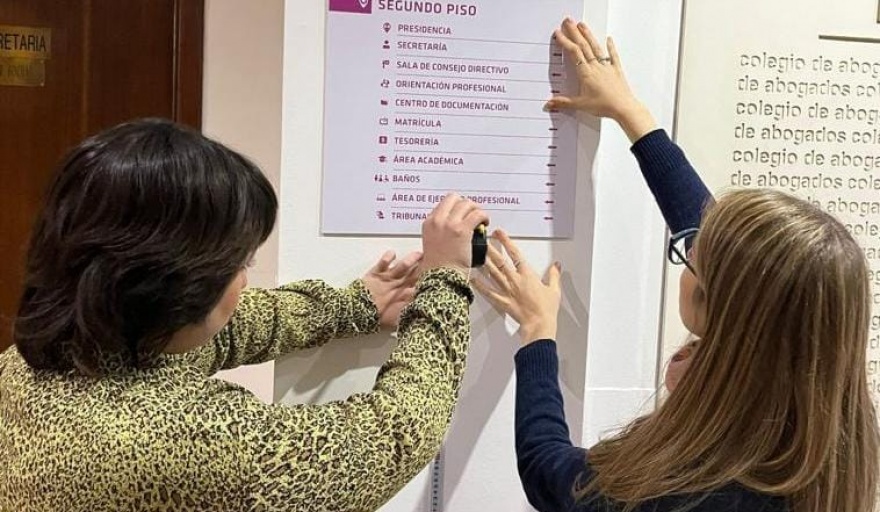 La presidenta de la institución, Rosario Sánchez, afirmó que desde que asumió tuvo el claro objetivo de fortalecer la accesibilidad de las personas con discapacidad, por ello hemos puesto en marcha un “programa de accesibilidad”, implementando un sistema de señalética a través de cartelería, a fin de ayudar al usuario en la ubicación de los distintos sectores del Colegio, promoviendo su autonomía e independencia”.