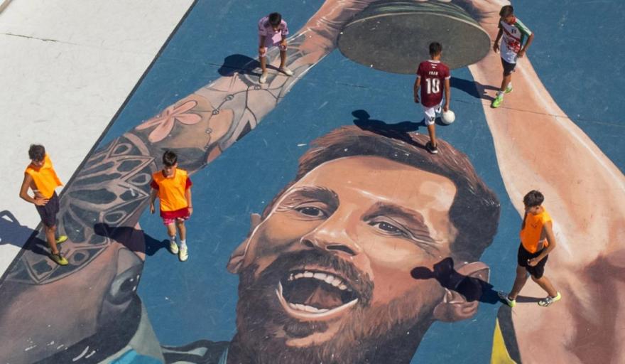 Dos artistas de la ciudad de Mar del Plata pintaron un mural de casi 100 metros cuadrados en el piso de cemento de una cancha de fútbol, en un balneario de Punta Mogotes para homenajear a Lionel Messi, un año después de haber comandado a la selección Argentina que se consagró campeona del mundo en Qatar.
