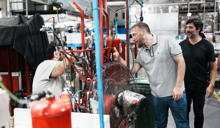 En la empresa recibido por José Gentile, Gustavo Lema, Carlos Barile, gerente de planta, y José y Pedro Gentile, hijos de los dueños. Mientras que por la municipalidad lo acompañaron por el jefe de Gabinete Martín Choren y el director ejecutivo del Instituto Municipal del Trabajo, la Producción y el Comercio Exterior local, Emiliano Baloira.