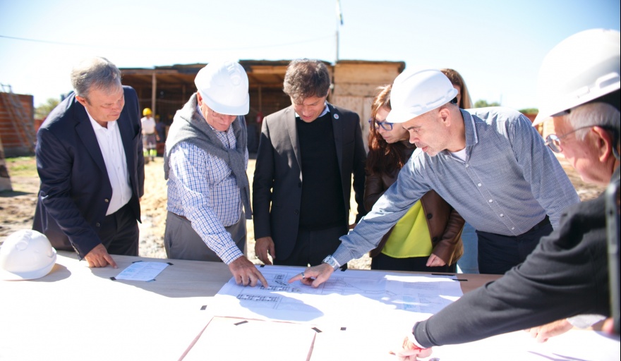 Allí Kicillof, Batakis y Cascallares supervisaron el avance de los trabajos que se impulsan desde el Gobierno Provincial articulando con el Municipio y que además de los inmuebles incluyen la nueva red de agua potable, cloacas, desagües pluviales, iluminación, servicio de gas y trabajos de parquizado en el espacio público.