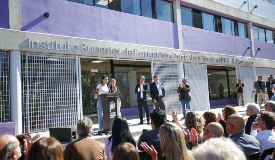 La intendenta de Quilmes, Mayra Mendoza y el gobernador de la Provincia de Buenos Aires, Axel Kicillfof, inauguraron este miércoles el nuevo edificio del Instituto Superior de Formación Docente y Técnica (ISFDT) Nº 83, ubicado en la calle 893 entre 843 y 844, en pleno centro de San Francisco Solano. Se trata de una iniciativa muy anhelada por la comunidad académica, docentes y estudiantes, ya que es la primera vez en décadas que la entidad cuenta con un espacio propio.