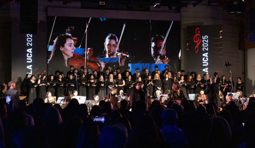 Con un emotivo homenaje al Papa Francisco y con interpretaciones musicales, el 29 de septiembre por la noche se llevó a cabo en el Campus Papa Francisco la Gala UCA 2025, evento presidido por el gran canciller y arzobispo de Buenos Aires, Mons. Jorge Ignacio García Cuerva y el rector Dr. Miguel Ángel Schiavone. Los periodistas Mariano Yezze y Mariana Arias, padre de un alumno UCA y graduada de la Universidad respectivamente, condujeron el acto, que fue transmitido en vivo a las sedes Mendoza, Paraná y Rosario.