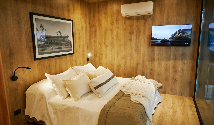 Otro modelo que está revolucionando el sector es el de SUMbox Hotelero. Se trata de un monoambiente plug-in, de una superficie de 18m², ideal para una experiencia pensada para el nuevo turismo que cuida de la naturaleza. Comparada con el tiempo de desarrollo y construcción que supone un hotel convencional, no menos de dos años, esta propuesta se entrega en un plazo de entre 60 y 90 días. Con un diseño apaisado y enfoque sustentable, los Lodge de IDERO también brindan una solución hotelera con módulos premium, que se destaca por sus amplias carpinterías, lo que posibilita a los huéspedes disfrutar de la naturaleza en su máxima expresión.