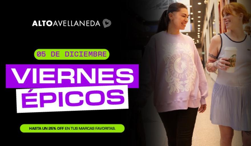 Este viernes 5 de diciembre, Alto Avellaneda invita a sus visitantes a una nueva edición de su programa de descuentos y beneficios: los Viernes Épicos. Todos los locales adheridos estarán señalizados con una comunicación especial, y los clientes podrán acceder a descuentos de hasta 25-30 % según la marca, mediante un sistema ágil y digital.
